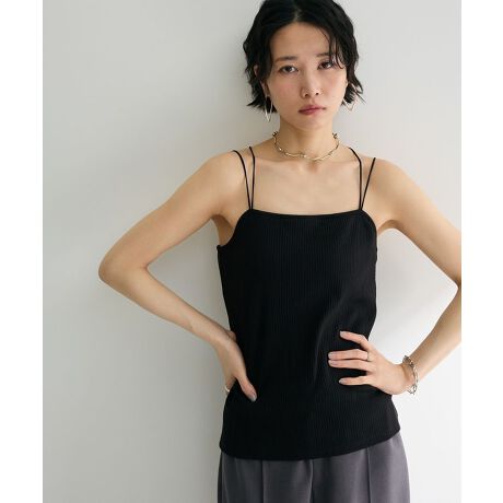 春夏のレイヤードアレンジにマストなカップ付きインナーキャミソール。華奢なダブルストラップをクロスさせたバックデザインが女性らしい抜け感を演出してくれます。ストレッチ性に優れたリブ素材の快適な着心地も魅力的。さらっと着るだけでヘルシーな肌見せスタイルが叶うおすすめのアイテムです。透け感[ややあり]