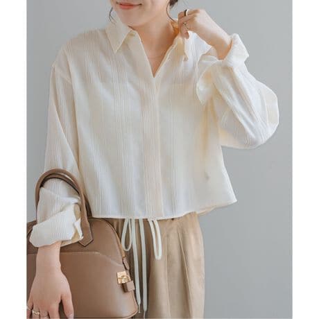 今年らしい短めの着丈がポイントのピンタックブラウス。