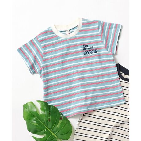 apres les cours(アプレレクール)の半袖Tシャツ「ALCロゴボーダーTシャツ」は、ナチュラルなスタイルにさりげなくデザインをプラスしたおしゃれアイテム*