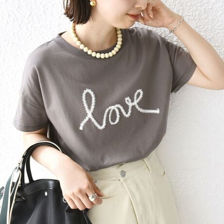 LOVEを模ったコード刺繍が目を惹く 大人可愛いTシャツ