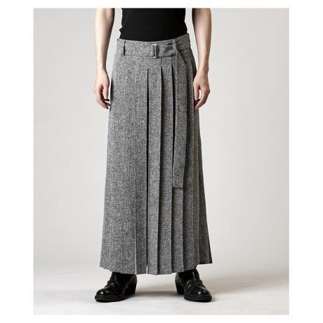 日本の伝統的な袴からインスパイアされたハカマプリーツトラウザーズ。深いプリーツによって立体感を生み出し、可動域の広いワイドシルエットが特徴的です。サイドにはコンシールファスナーを配し、ウエストはゴム仕様で快適な履き心地を実現。軽量なサマーツイード生地を使用し、春夏シーズンに適したエアリーな着用感を提供します。