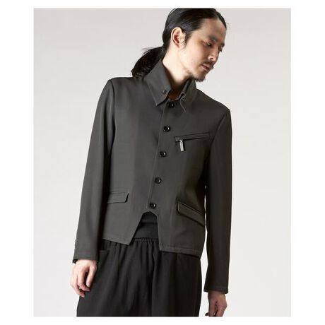コンパクトなショート丈が特徴のZIPショートジャケット。すっきりとしたシルエットに、高襟デザインがスマートな印象をプラス。左胸のバイアスファスナーやフロントボタン、フラップポケットなど、ミリタリーライクなディテールを取り入れつつ、洗練された仕上がりに。セットアップ対応のベルテッドテーパードトラウザーズと合わせることで、統一感のあるスタイリングが完成します。