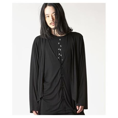 カーディガンとガウンを融合させたレイヤードデザインが特徴のオーバーサイズカーディガン。前後で異なる着丈が独特なシルエットを生み、歩くたびに揺れるドレープ感がエレガントな雰囲気を演出します。柔らかく落ち感のある素材を使用し、フロントボタンとサイドポケットを備えた実用的なディテールも魅力。