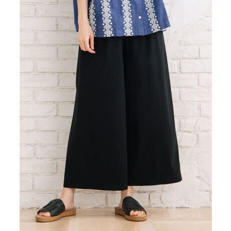さらりとしたドライタッチ素材で、暑い季節も快適に過ごせるワイドパンツ。