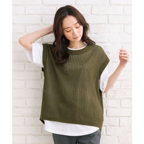 メッシュニットベスト×ベーシックTシャツアンサンブル。