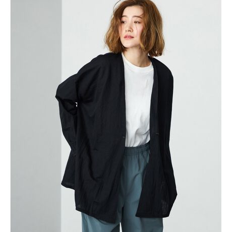 タンクトップなど、肌の露出が多いトップスの上にも、品よく羽織れます。