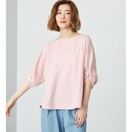ドロップショルダーとタックを入れたスリーブデザインは、気になる二の腕をカバーし、華奢見え効果も抜群です。