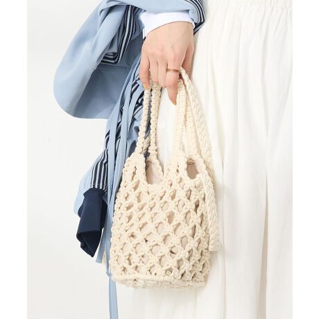 手編みのナチュラルな雰囲気が魅力的なマクラメバッグ。