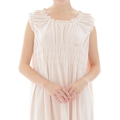 襟周りとアームにギャザーを寄せ、ゴム仕様にすることで着脱も楽ちんに。
