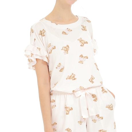 ルームウェア 接触冷感リブニットテディベア セットアップ