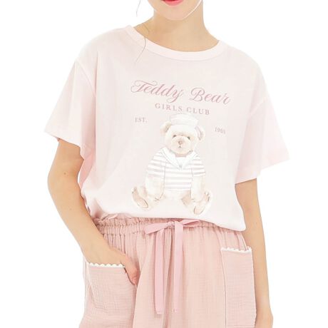ルームウェア シルケット天竺オンプリントテディベア セットアップ