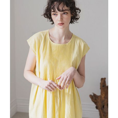 フロントにたっぷりととったピンタックが印象的なワンピース。