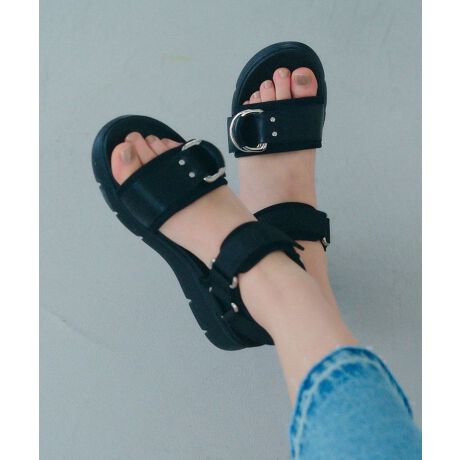存在感のあるダブルリングがコーディネートのアクセントに。ボリューミーなソールでさりげなくスタイルアップを叶えます。