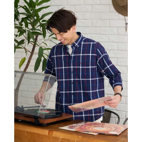 七分袖チェックシャツ