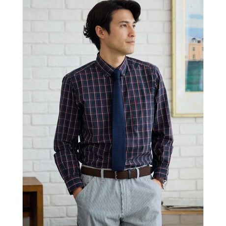 ゴールデンベアのオリジナルチェックを用いたボタンダウン襟シャツです。お手入れが簡単なイー ジーケア性が魅力です。着合わせのしやすい配色でインナーから羽織りとしても活躍します。