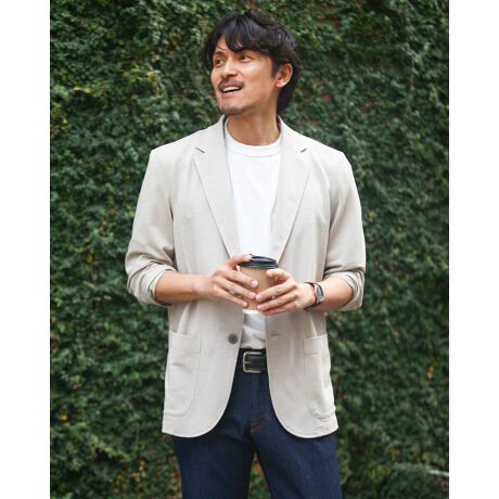 ジャケット感覚で着用いただける襟付きのカーディガンです。吸水速乾性に優れた麻調の鹿の子素材を使用しています。軽く、さらっと羽織れるのが特徴です。ご家庭でのお洗濯が可能でお手入れがしやすく、長い期間で着用が可能です。