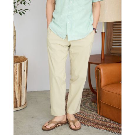 表情のあるコードレーン素材を使用したイージーパンツです。伸長率に優れたストレッチ性と、接触冷感性に優れています。ウエストゴムのイージー仕様で快適なはき心地が魅力です。様々なスタイルに合わせやすいレギュラーシルエットに仕上げました。