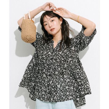 ボリューム袖とティアードデザインがフェミニンなふんわり透け感ブラウス