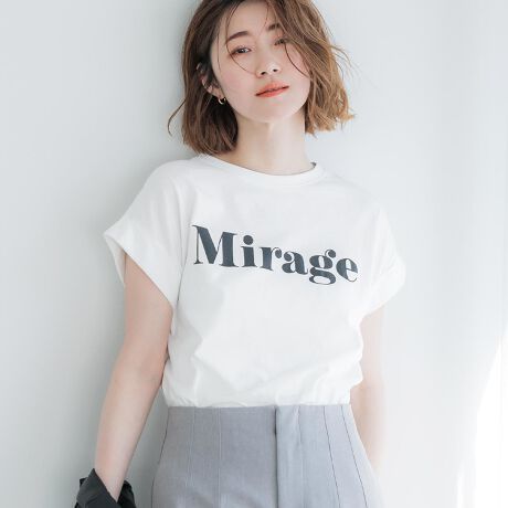フレンチスリーブが肩まわりをすっきり見せつつ、カジュアルなロゴデザインが抜け感を演出。