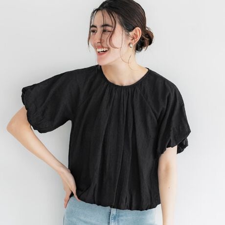 繊細なフラワー柄レースが上品で涼しげな印象のバルーンブラウス