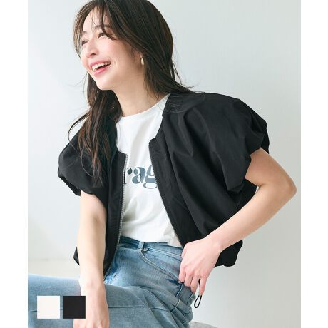軽やかな素材とショート丈が特徴の、春夏にぴったりなフレンチスリーブブルゾンです。