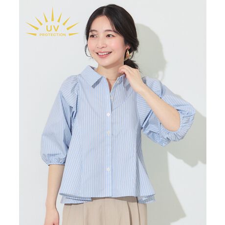 \新色登場/【UVカット】パフスリーブフレアシャツ 全2色