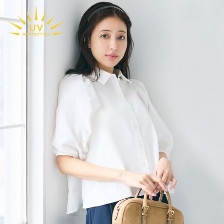 \新色登場/【UVカット】パフスリーブフレアシャツ 全2色