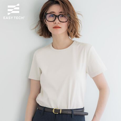 ハリのある素材で、シワにならず、形もきちんとしており、仕事用にありがたいTシャツです。丈感も短めで合わせやすいですし、ボディーラインも拾わないので、とても良いです。