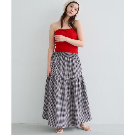 ギンガムチェックで夏気分高まるふんわりロングスカート