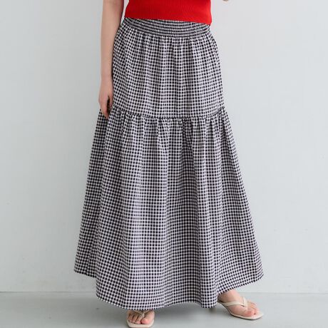 ギンガムチェックで夏気分高まるふんわりロングスカート