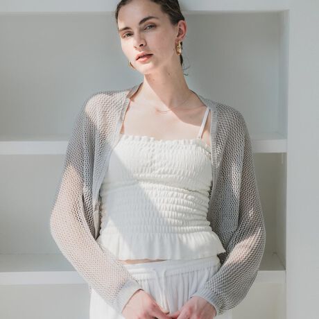 ざっくりとした編地が魅力のメッシュカーディガン