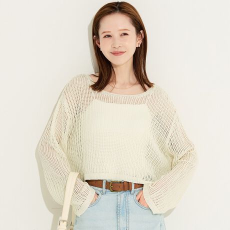 軽やかな透かし編みが涼しげで、春夏にぴったりのニットトップス