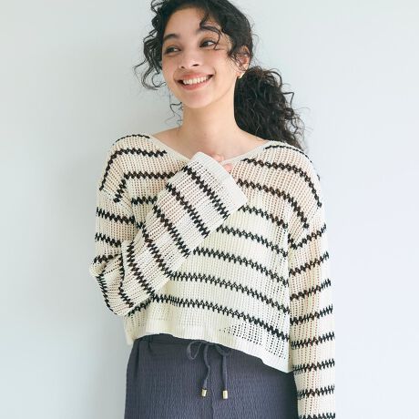 麻タッチメッシュショートニット 全4色