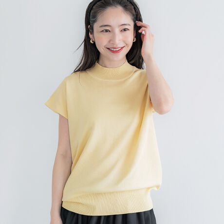 シャリ感レーヨンハイネックフレンチスリーブニット 全4色