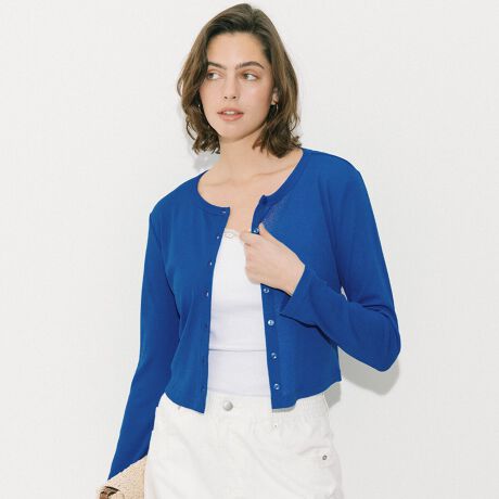 やや透け感があり初夏にぴったりの薄手カーディガン。