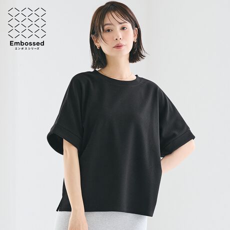 シンプルかつこなれ感のあるデザインのエンボストップス。