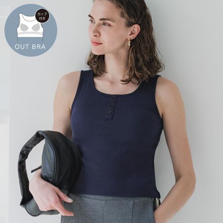 【WEB限定値下げ】OUT BRAヘンリーネック風カップ付きタンクトップ 全3色