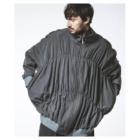 モードとスポーツの要素を融合させた ギャザードレープロングトラックJKT。滑らかなドレープとギャザーの切替が印象的なデザインで、ロングシルエットながら軽やかな動きを演出します。 トラックジャケットのスポーティな要素をベースに、モード感漂うシルエットへと昇華 した一着。