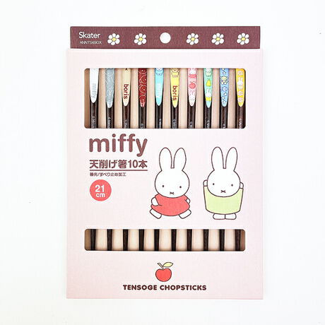 ミッフィーの天削り箸10本セットです。人気のミッフィーデザインが大集合☆好きなデザインを選べて嬉しい♪箸先滑り止め加工付きで使いやすいお箸です。【サイズ:21cm】
