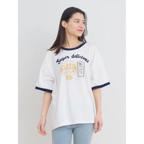 ハンバーガーのキャラクタープリントがチャーミングなリンガーTシャツ