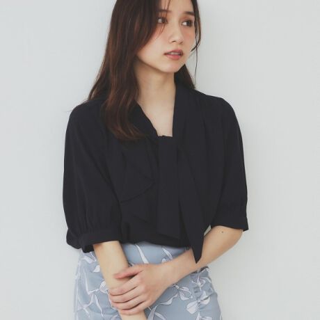 ・立体的なラッフルフリルとボウタイの組み合わせが、絶妙なバランス感を生み出すデザインブラウス。