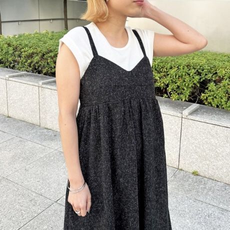 シンプルでありながら存在感のあるフレアシルエットのキャミワンピース。