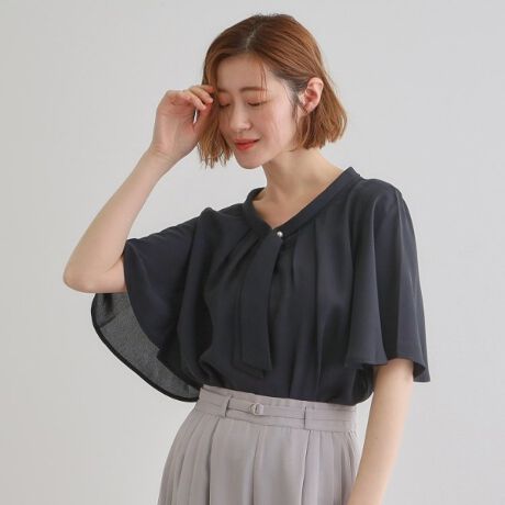 パール調使いが華やか 上品ボウタイブラウス