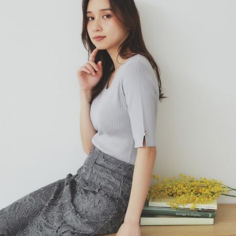 ・リブ編みが程良くフィットし、すっきりしたシルエットがスタイルを美しく見せ、五分袖のデザインが着心地良く軽快さを演出します。