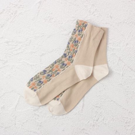 ◆あなたに優しい 逆スパ絵画花 クォーターソックス