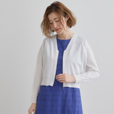 ファスナー開きのデザインで、カーディガン感覚で気軽に羽織れる一枚。