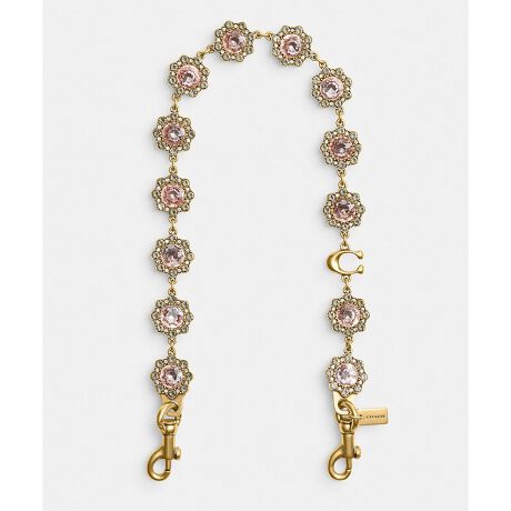 豪華なジュエリー風のショート チェーンストラップ。クリスタルが煌めくフローラルモチーフに、コーチの“C”のチャームがアクセントを添えます。両端のドッグリーシュ クリップをお手持ちのバッグに付ければ、装いを瞬時にアップデートいただけます。