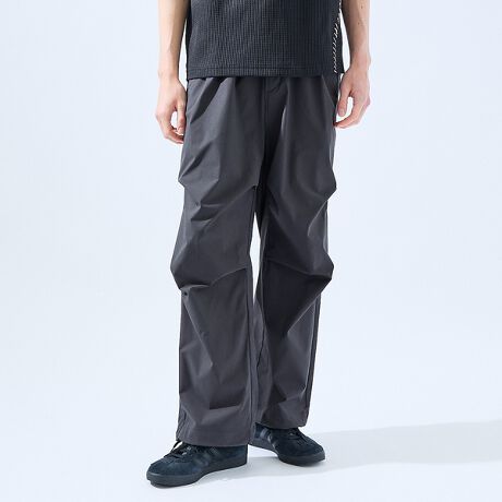 空軍特殊部隊のパラシュートパンツをベースに、 AH ABAHOUSEのフィルターを通し”今”の気分にぴったりなパラシュートパンツが登場。 ワイドながら立体的なシルエットが綺麗にでるのが特徴です。 裾にドローコードを入れたデザインなのでシューズに合わせて絞ってもおすすめです。