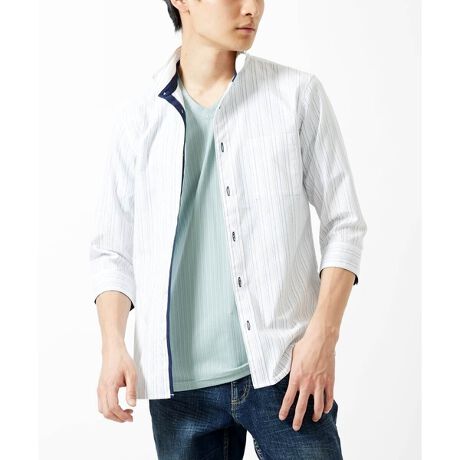 【日本製生地使用】シャドーバイヤスストライプ七分袖シャツ