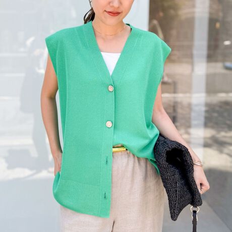 ・軽やかなシアー感が魅力のミラノリブ編みのベスト